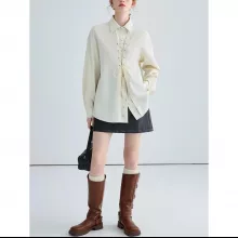 - Style: Casual yet sophisticated, with a turn-down collar and long sleeves.