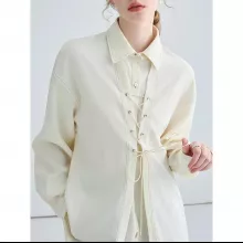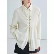 What sets this blouse apart is its blend of functionality and fashion. While the polyester fabric ensures durability and ease of care (no stretching!), the elegant lace-up detail adds a touch of uniqueness not commonly found in casual shirts. This design element transforms an ordinary white blouse into a statement piece that’s both trendy and chic.