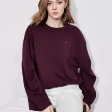 This pullover hoodie is not just another basic piece—it’s a wardrobe essential designed with both comfort and style in mind. The solid purple color brings a pop of vibrancy to your fall and winter outfits, while the pleated sleeves add a touch of femininity and sophistication. Perfect for a variety of occasions, this hoodie transitions effortlessly from casual day wear to more polished office looks. The relaxed, loose fit flatters every body type, and the soft, breathable fabric ensures you stay cozy without overheating.