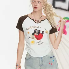 Bring a pop of personality to your wardrobe with this adorable cartoon-printed short sleeve T-shirt. Perfect for sunny days and casual hangouts, this chic women’s tee is designed to keep you cool, comfortable, and effortlessly stylish. With a sweet, playful vibe and a flattering cropped cut, it’s the ultimate go-to top for summer fun. Whether you’re heading to a café, a park stroll, or just lounging with friends, this shirt adds charm to any outfit.
