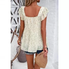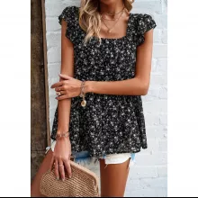 Aside from its eye-catching floral pattern and flattering square neckline, this top is enhanced with delicate appliques and a ruffled edge, adding a refined touch to the garment. The blend of style and comfort makes it a standout piece in any wardrobe. It’s not just a top; it’s a statement of your impeccable taste and understanding of quality fashion.