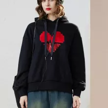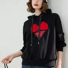 This hoodie is the perfect mix of style and practicality. It’s not just a sweatshirt – it’s a statement piece that adds a pop of color and a touch of flair to your everyday wardrobe. Whether you’re out on a brisk winter morning or lounging around, this cozy hoodie offers the warmth and softness you need, while the bold red heart embroidery makes sure you stand out in a crowd.