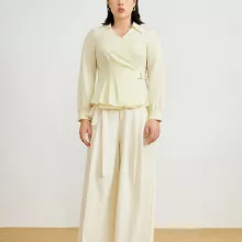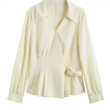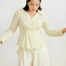 This chiffon blouse is a versatile essential for any modern woman’s wardrobe. The solid beige color pairs effortlessly with a variety of bottoms, from skirts to trousers, and adds a touch of sophistication to your look. The V-neck design elongates the neck, while the waist tie flatters your shape, making this blouse not only stylish but also figure-enhancing.