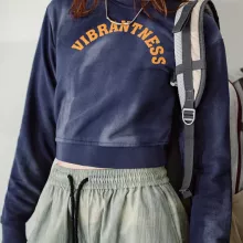 Stay effortlessly stylish with this faux batik letter-print sweatshirt, designed for women who love casual comfort with a vintage-inspired touch. The blue and gray color combination creates a trendy, washed-out effect, giving this pullover a laid-back, streetwear aesthetic. Perfect for layering or wearing on its own, this sweatshirt is a must-have for effortless everyday style.