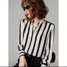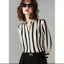 Elevate your office wardrobe with this chic long-sleeve blouse, designed for the modern woman who values both style and comfort. Perfect for the cooler months, this loose-fit blouse offers breathability without compromising on sophistication. Featuring a classic V-neck and a striped pattern, it’s ideal for both professional settings and casual outings. Whether you’re heading to the office or enjoying a day out, this blouse adds a touch of elegance to any look.