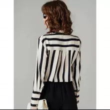This V-neck striped blouse is a must-have for your autumn wardrobe. Whether you’re looking for an everyday office staple or something special for those cooler months, this top checks all the boxes. Don’t miss out on the opportunity to upgrade your look with this stylish and versatile piece. Add it to your cart now and step into the season with confidence!
