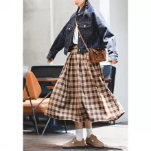 Embrace the charm of autumn with our Women’s Vintage American Plaid Pocket Half Skirt. This high-waist, long umbrella skirt combines classic plaid patterns with modern comfort, offering a stylish and relaxed fit that flatters every silhouette. Perfect for any occasion, this skirt effortlessly transitions from casual outings to more formal events, making it a versatile addition to your wardrobe. Designed to provide both comfort and style, it’s the ideal piece for the fashion-conscious woman.
